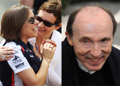 Sir Frank Williams talks with his daughter Claire Williams as his driver Pastor Maldonado wins the Spanish Formula One Grand Prix at the Circuit de Catalunya. (Photo by Getty Images)