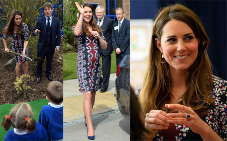 Catherine, Duchess of Cambridge (R) is greeted as she arrives on her visit to The Willows Primary School. (AFP)
