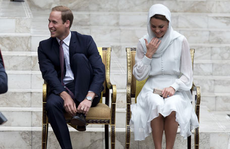 Prince William (centre R) and his wife Catherine, the Duchess of Cambridge (centre L) visit a mosque at KLCC in Kuala Lumpur. (AFP)