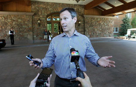 Chairman of Walt Disney Parks and Resorts, Thomas Staggs talks with reporters after arriving at the Allen & Company Sun Valley Conference in Sun Valley, Idaho, Tuesday, July 9, 2013. (AP)