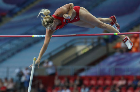 US Becky Holliday clears the bar during the women's pole vault event at the 2013 IAAF World Championships at the Luzhniki stadium in Moscow on August 11, 2013. (AFP)