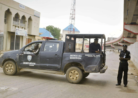 A security operative blocks a road leading to a prayer ground during Eid Al Fitr prayers at Sheikh Ahamdu Tijjani Mosque at Kofar Mata in Kano, Nigeria, July 17, 2015. (Reuters)