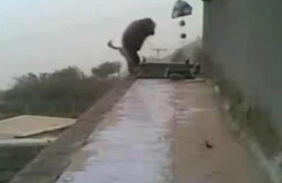 A film carried by Saudi newspapers and removed by U-Tube later showed many monkeys trying to reach fruit tied on top of the house were thrown off the roof after getting an electric shock from power cables planted by the man.