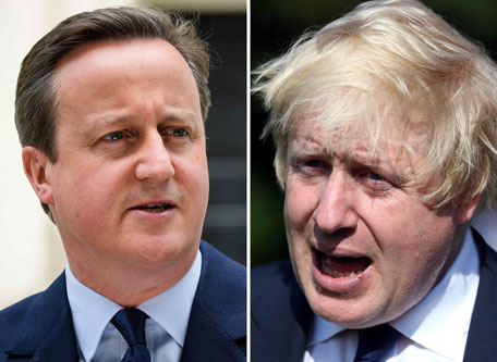 A combination of pictures created on June 22, 2016 shows British Prime Minister and "vote remain" campaigner David Cameron (R) speaking in Luton, north of London on May 24, 2016 and Former London Mayor, and "Vote Leave" campaigner, Boris Johnson (L) in Piercebridge, near Darlington, north-east England on June 22, 2016. EU leaders warned Britain June 22 that leaving the bloc would be final as two polls put the Brexit vote just ahead of "Remain" on the eve of a knife-edge referendum that has put the continent on alert. Britain goes to the polls on June 23 to vote to leave or stay in the EU. (AFP)
