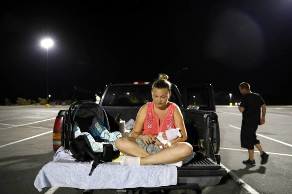 A baby born near the Gulf Coast after Hurricane Michael spent his first night outside a hospital in a Walmart parking lot because no better shelter was available.