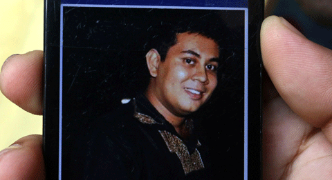 A photograph of Bangladeshi blogger Niloy Chakrabarti, who used the pen-name Niloy Neel, 40, is seen on a cellular phone in Dhaka on August 7, 2015. (AFP)