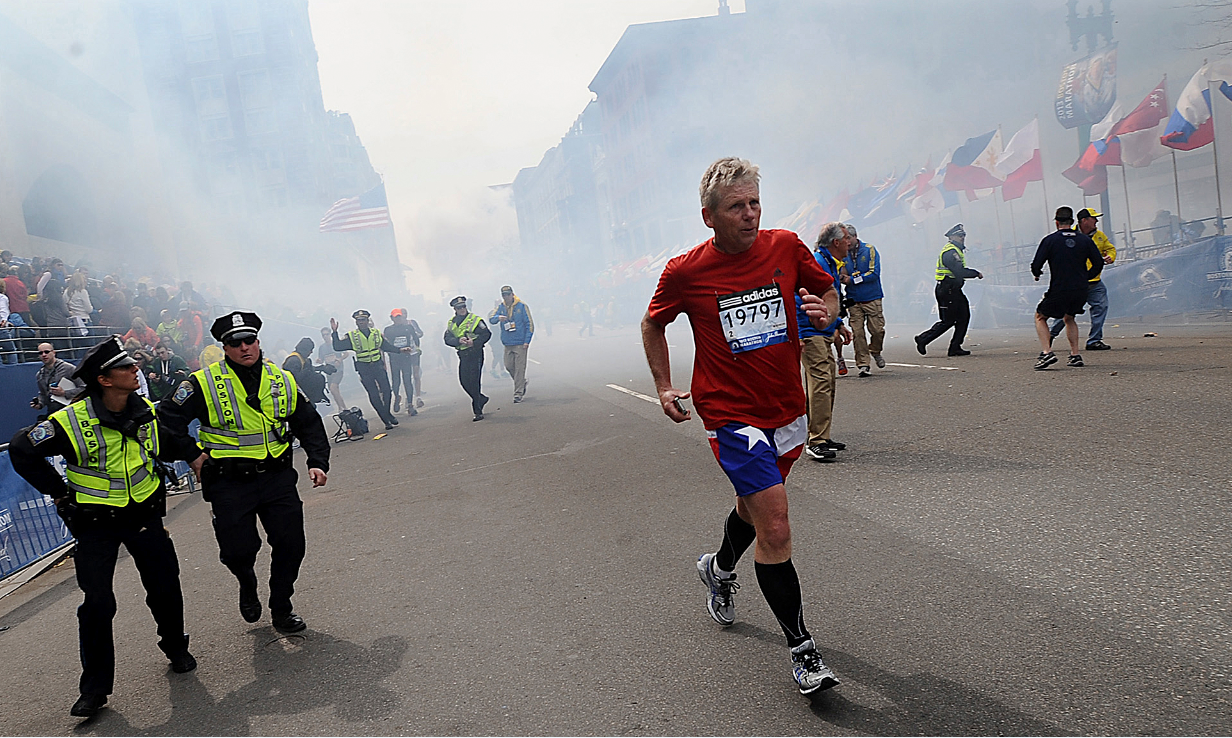 Bill Iffrig, the runner who fell, said "the shockwave must have hit me. My legs felt like noodles." But he got up and walked away again and told his story to many US media.