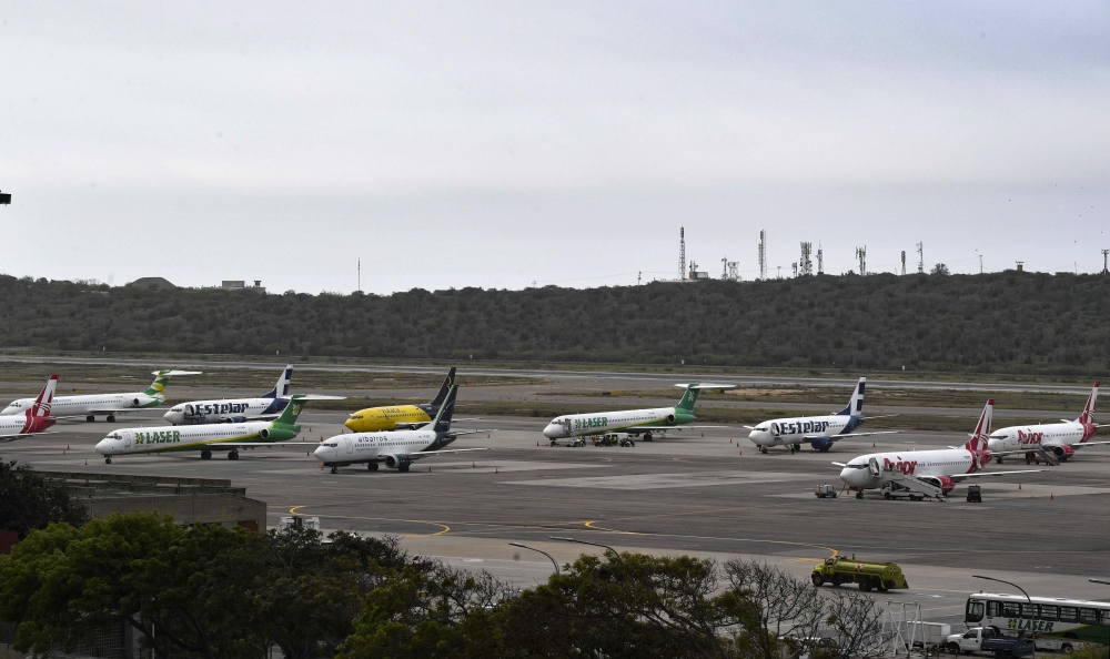 Commercial planes sit on the tarmac at Simon Bolivar International Airport in Maiquetia, in the state of Vargas, northern Venezuela. (AFP)