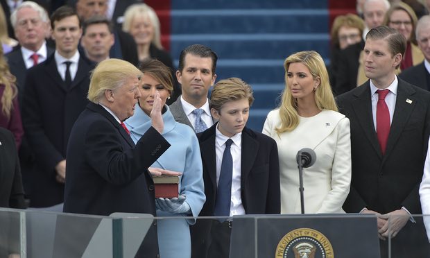 In a show of solidarity, all of the living American presidents attended the swearing-in ceremony, except for 92-year-old George H.W. Bush, who was hospitalized this week with pneumonia. His wife, Barbara, was also admitted to the hospital after falling ill.