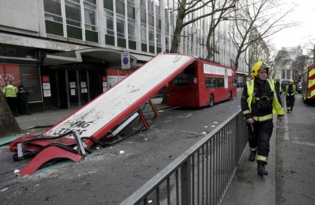 A number 91 double-decker bus had its roof ripped off after hitting a tree, causing injury to passengers and passers-by, local media reported. (Reuters)