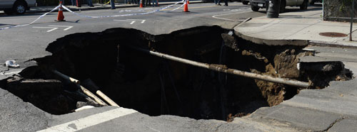 Labourers then filled the hole with molten tar and used a heavy roller to flatten the surface.