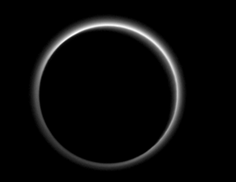 Just seven hours after closest approach, New Horizons aimed its Long Range Reconnaissance Imager (LORRI) back at Pluto, capturing sunlight streaming through the atmosphere and revealing hazes as high as 80 miles (130km) above Pluto’s surface.