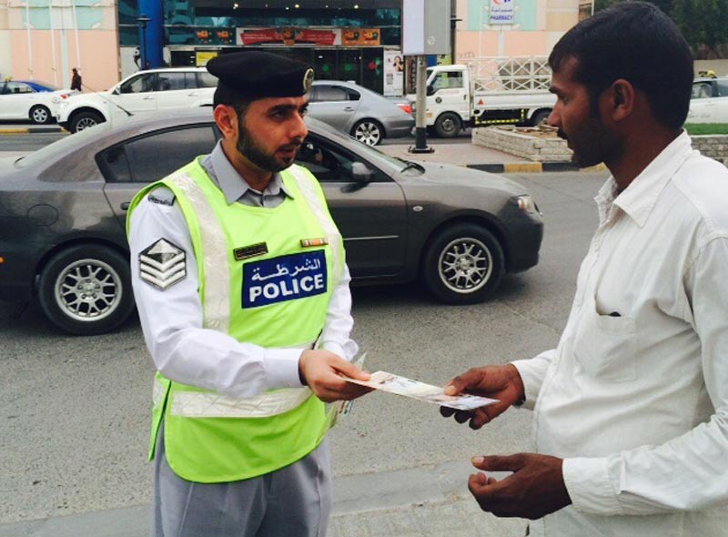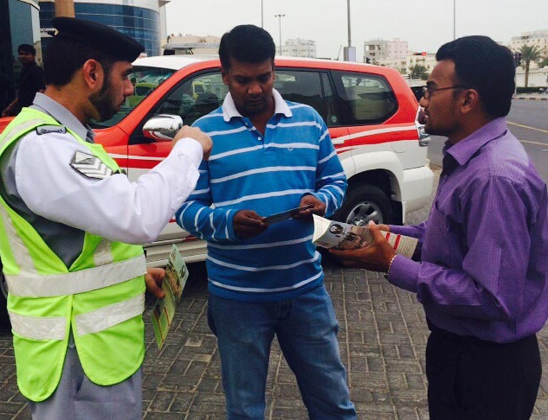 Traffic patrols have been distributing leaflets in Arabic, English and Urdu languages to pedestrians which offer advice on how to avoid road accidents.