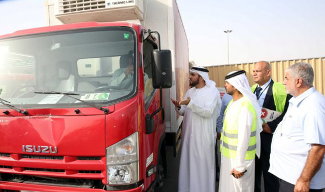 The Food Inspection Section of Dubai Municipality's Food Safety Department, in collaboration with the Roads and Transport Authority, RTA, Dubai Police and the Assets Management Department of the municipality, have organised an inspection campaign for food transport vehicles at the Warsan Vegetable and Fruits Market to ensure that they meet the hygiene requirements of the Food Safety Department for transporting food in a hygienic and safe way.