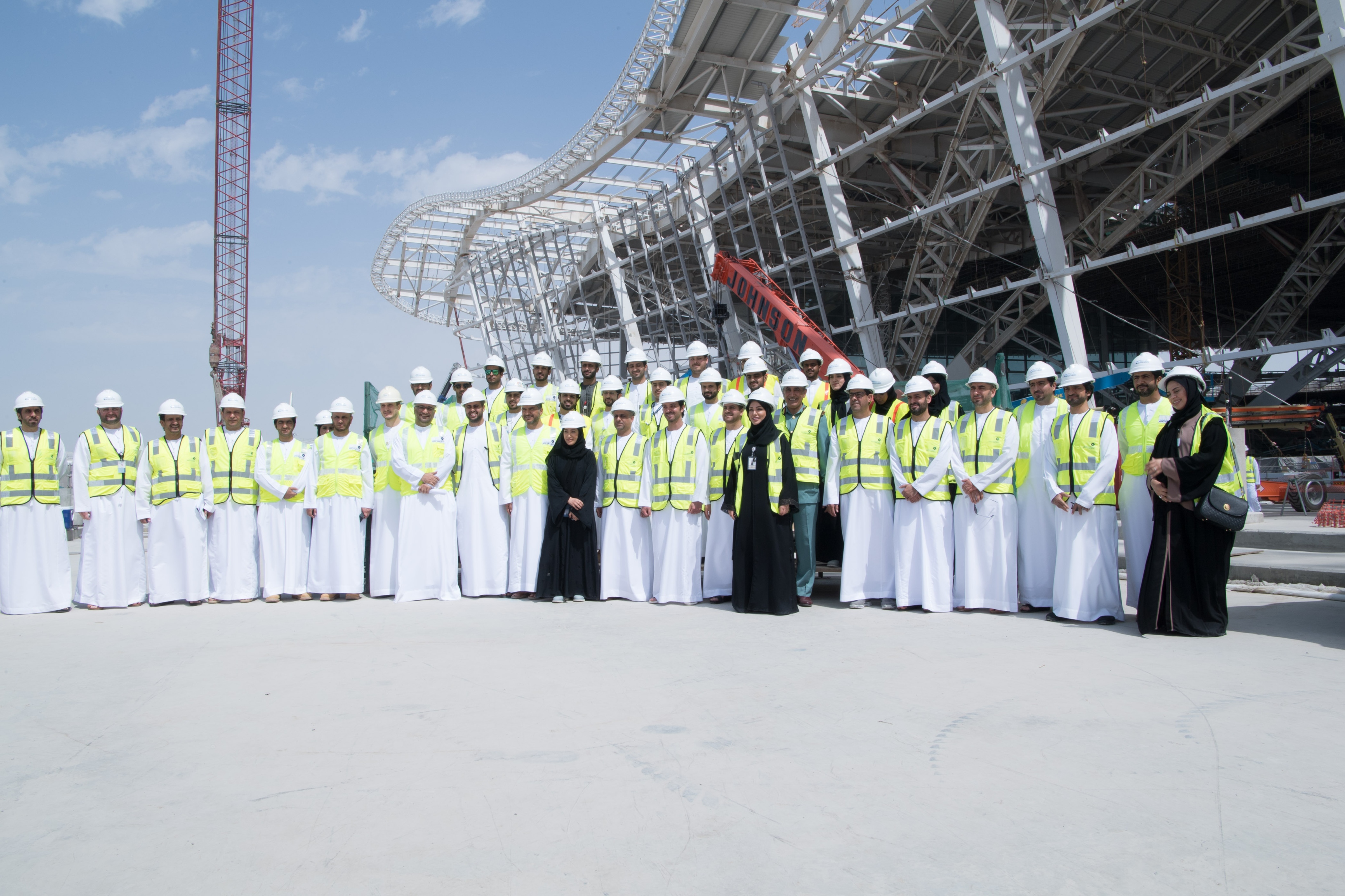 During his tour of the complex, Sheikh Hazza surveyed the central terminal space, the duty-free zone area, the under-construction transit hotel, the moving sidewalks and the administration office building. He also made a stop to review the 28-metre-high arch which stretches up to 180 metre at the entrance, making it one of the world's largest internal arches. H.H.'s also visited the departures and arrivals halls and parking facilities, as well as the transit passengers’ section.