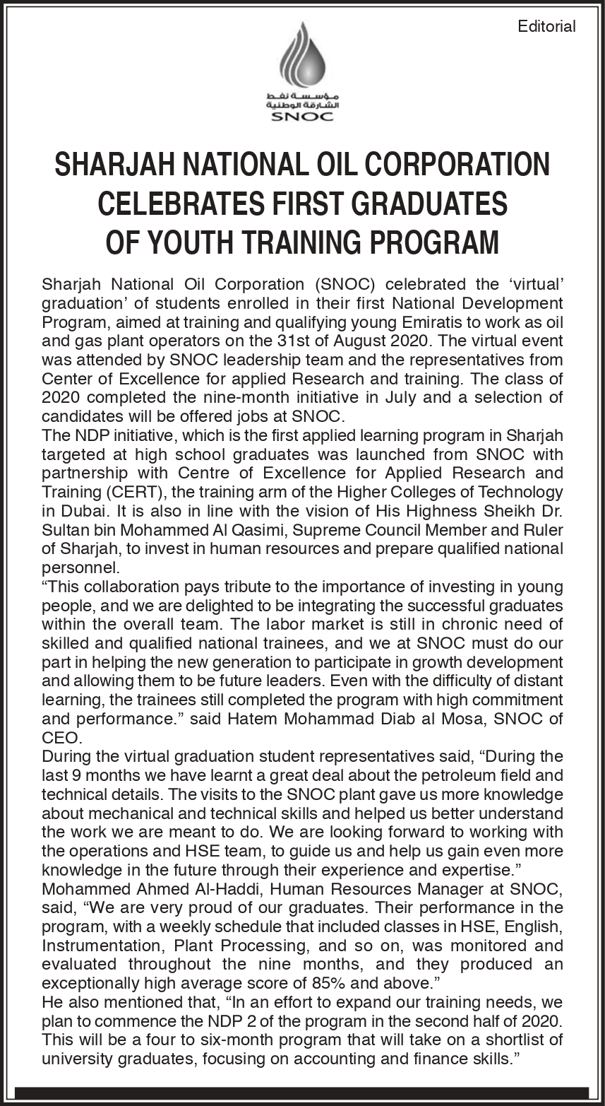 Ad: Sharjah National Oil Corporation Celebrates Graduates of Youth Program