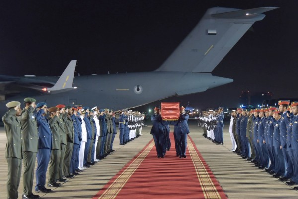 The body of martyr Sultan Mohamed Ali Al Naqbi arrived onboard a military plane of the UAE Air Force and Air Defence at the Al Bateen Airport in Abu Dhabi on Monday.