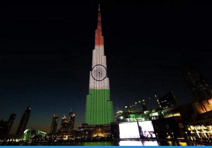 The stunning visuals, featuring the three colours of the Indian flag, embody the deep friendship and co-operation between the people of the two countries, linked by strong cultural and commercial ties.
