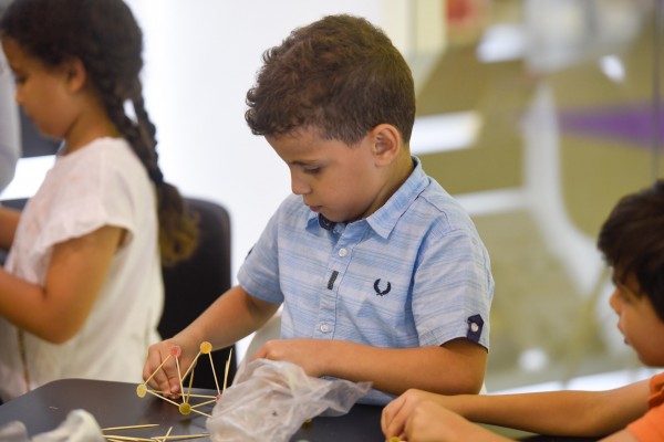Using candies and toothpicks, the children were able to identify structurally strong geometric shapes which can support heavy loads.