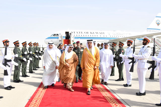 Sheikh Mansour welcomed his guest at the airport's VIP lounge where they discussed the distinguished brotherly relations between the UAE and Kuwait, and explored ways of fostering cooperation in various fields for the benefit of the two brotherly peoples.