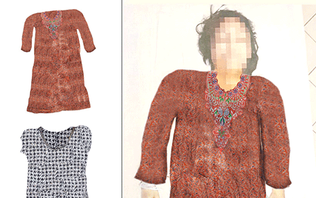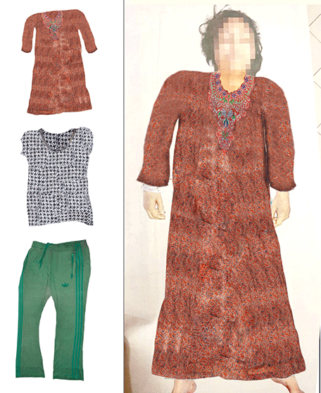 The white woman is 155 centimeters tall, weighs 56 kg and is in her thirties. She was found wearing a long Arab dress and green Adidas trousers underneath.