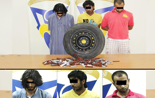 The three were arrested with a large amount of money and Tramadol pills hidden inside the spare tyre of the car they were driving.