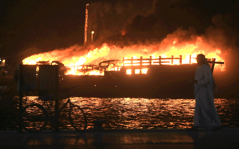 Major Ali Hassan Al Mutawa, Director of Operations Department at the Directorate of Civil Defence in Dubai, who supervised the fire extinguishing operation, said squads were able to prevent the spread of fire to the neighbouring boats.