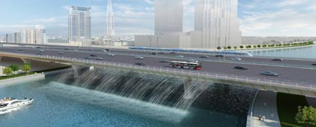 Accordingly, works have been divided into three contracts; the first for constructing bridges across the water canal on the Sheikh Zayed Road comprising eight lanes in each direction, rising eight meters above the water level to ensure free navigation in the Canal round-the-clock.