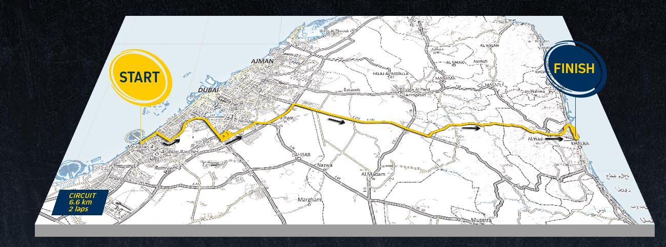 Stage one: February 3, Dubai International Marine Club to Fujairah, 179km