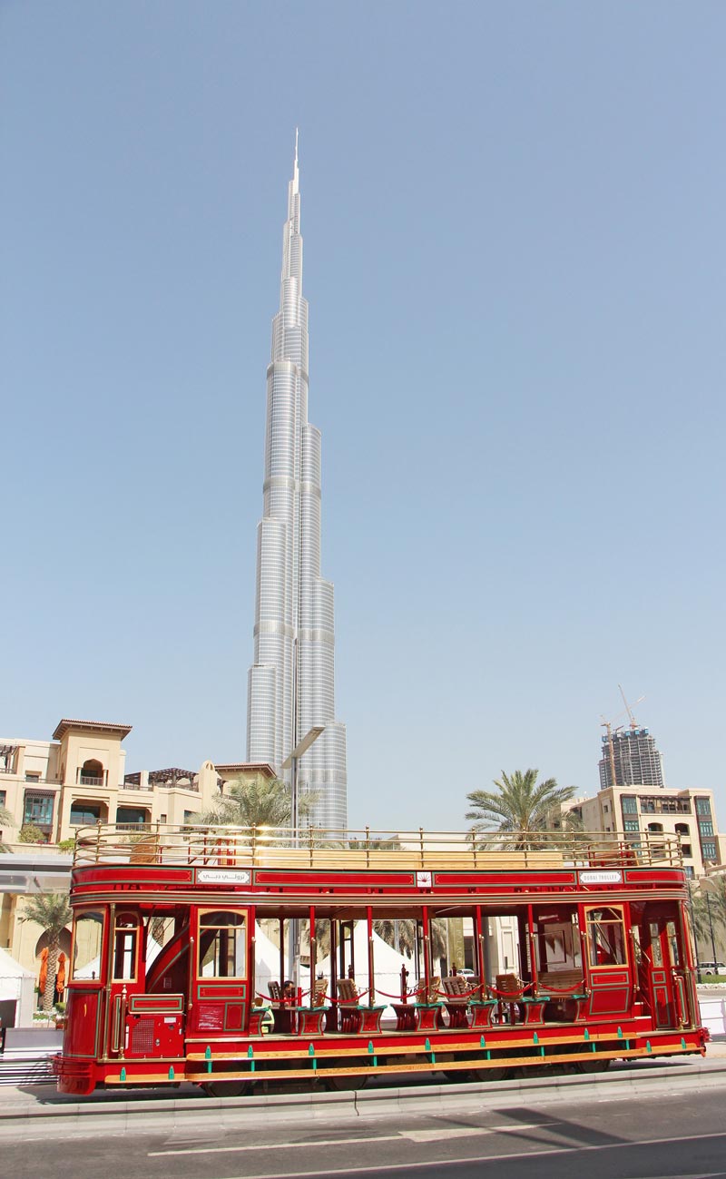 Dubai Trolley’s first phase that will be unveiled soon connects visitors and residents over a distance of 1km, passing by Burj Khalifa, The Dubai Mall, The Dubai Fountain, Souk Al Bahar and Mohammed bin Rashid Boulevard.