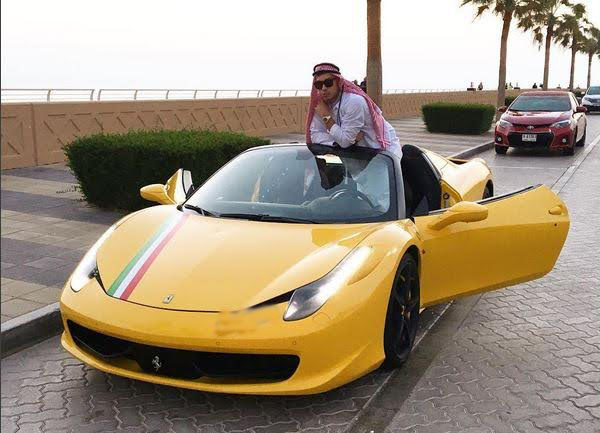 ‘Just landed into Dubai picked up the Ferrari! Don't worry I won’t speed ;)’