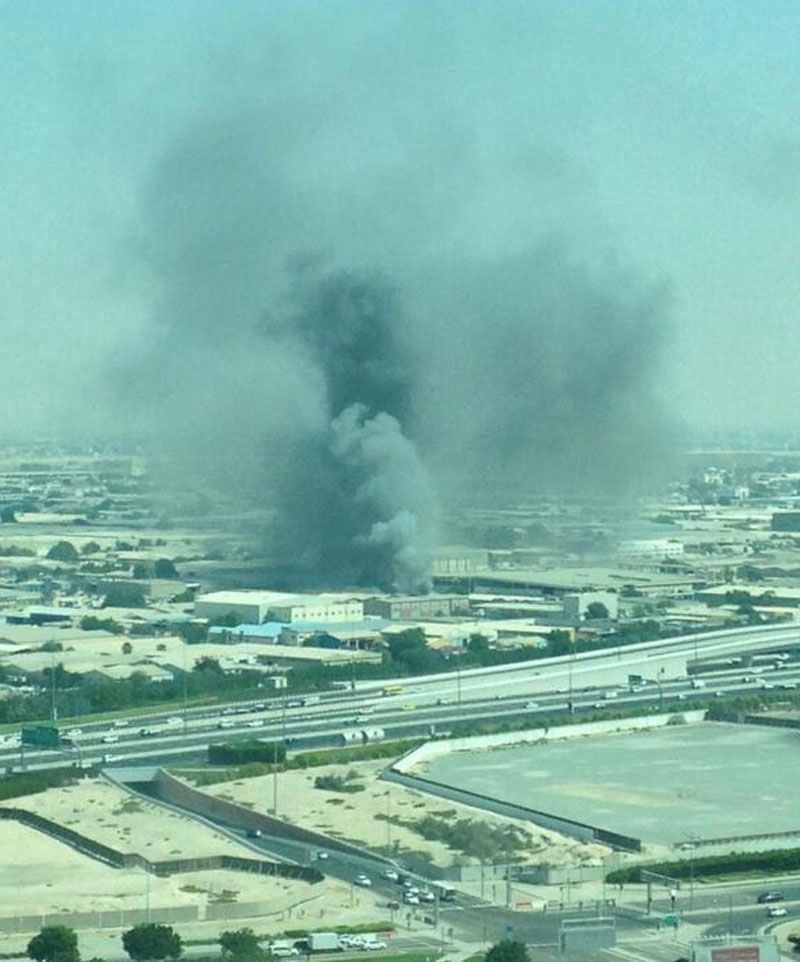 An eyewitness, who was driving on Al Khail road, stated that he saw plumes of black smoke emerging from the Dubai Festival City side.