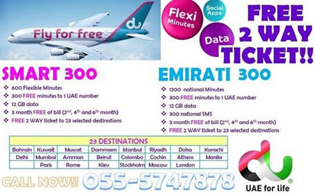 Dubai-based telecom operator Du is running a subscription campaign on social media, offering free air tickets to 23 destinations along with other freebies.