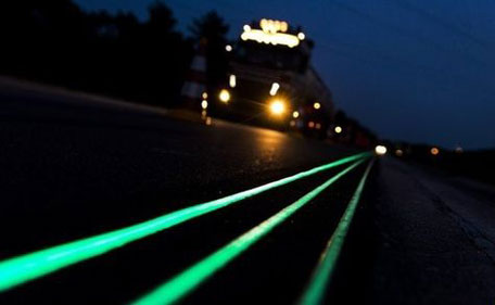 Once the paint has absorbed daylight it can glow for up to eight hours in the dark, doing away with the need for street lights.