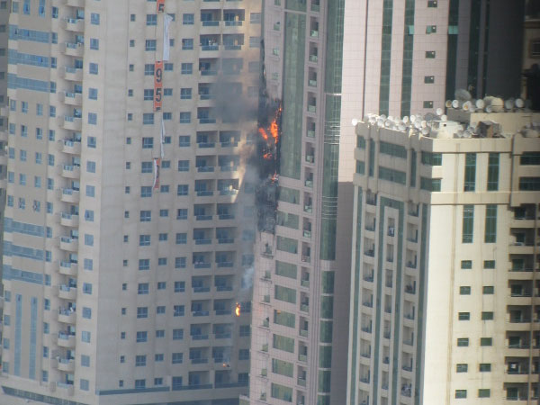 According to eyewitness reports, the building, Al Aleeka, is a high-rise near Al Nahda park and several floors were burning, before the fire was brough under control by 4.30pm.