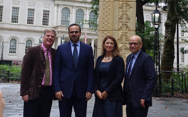 In the presence of Mohammad bin Abdullah Al Gergawi, Minister of Cabinet Affairs, Vice Chairman of the Board of Trustees and Managing Director of Dubai Future Foundation, as well as a number of specialists and subject-matter experts, interested parties and tourists, the historic arch gate of Palmyra’s Temple of Baal was reconstructed in New York City’s Times Square, facing the municipal building.