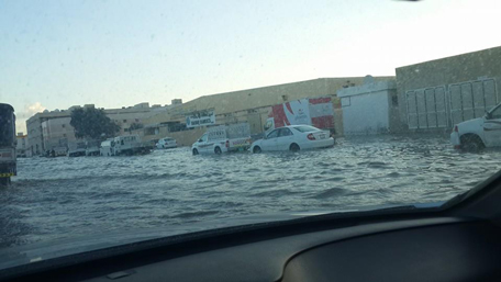 Al Quoz flooded this morning. (Pic credit: Sabiha Latif)