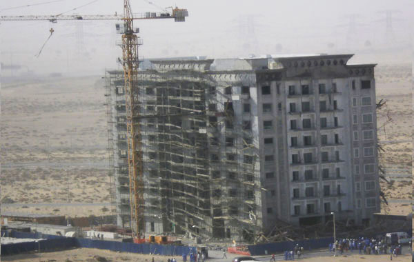 A major accident at a construction site in Dubai Land area, near Dubai Outlet Mall, at about 10.30am on Saturday morning left numerous workers in a state of panic.
