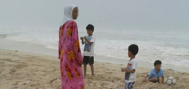 The four boys ventured towards the water in Dabiya beach in the city, prompting the maid, Safiya, to scream and chase them into deep water.