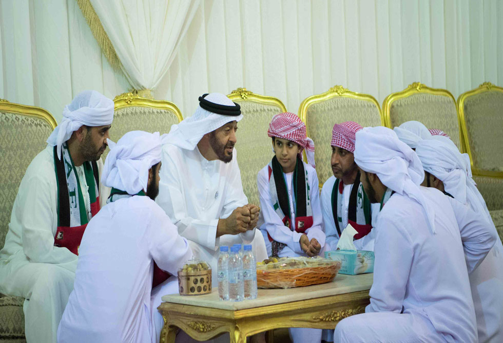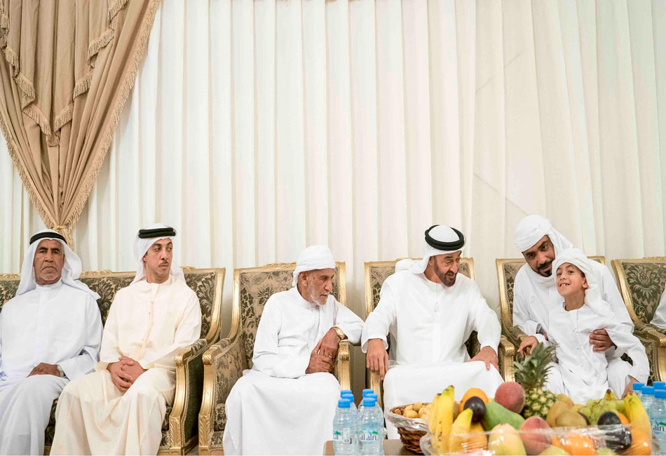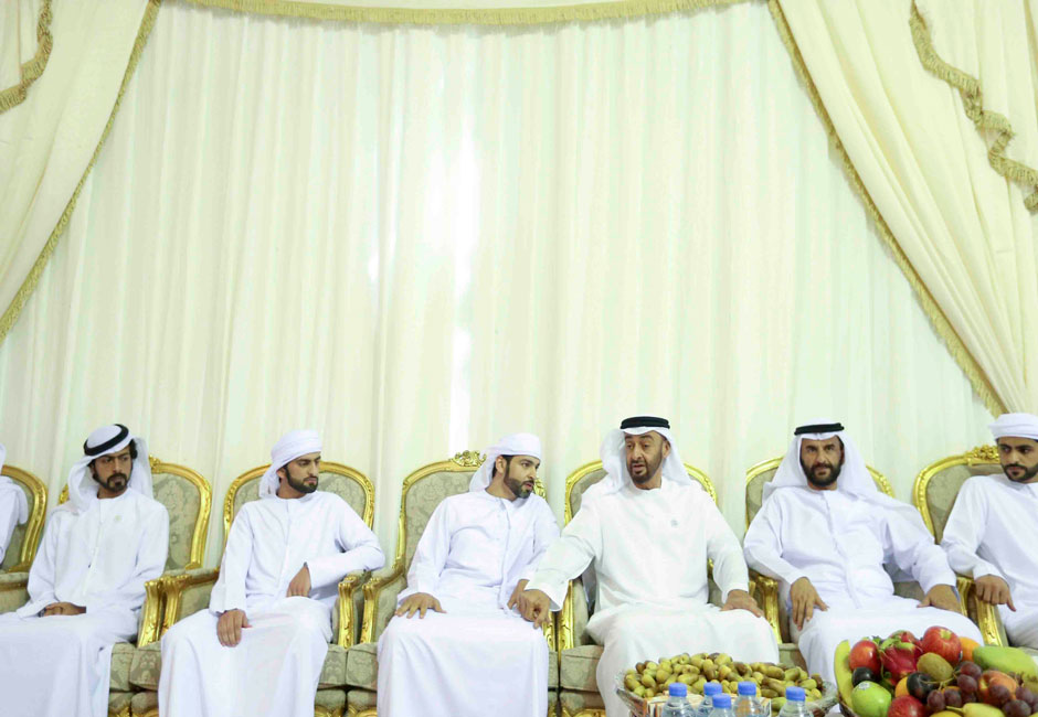 His Highness Sheikh Mohamed bin Zayed Al Nahyan, Crown Prince of Abu Dhabi and Deputy Supreme Commander of the UAE Armed Forces, today offered his condolences to the families of the nation's martyrs Khalifa Saif Saeed Al Khatri, First Warrant Officer Ali Mohammed Rashid Al Hassani, Sergeant Khamis Abdullah Khamis Al Zeyoudi, and First Corporal Obaid Hamdan Saeed Al Abdouli, who fell while performing their duties as part of the Saudi-led Arab Coalition’s "Operation Restoring Hope" in Yemen.