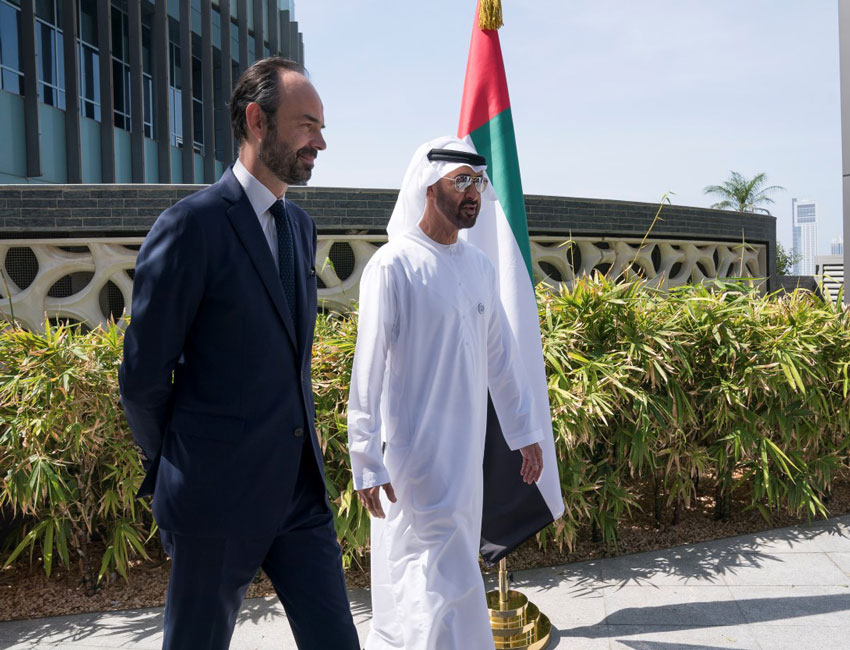 His Highness Sheikh Mohamed bin Zayed Al Nahyan, Crown Prince of Abu Dhabi and Deputy Supreme Commander of the UAE Armed Forces, received Edouard Philippe, Prime Minister of France, who is currently on a visit to the UAE, in Abu Dhabi on Saturday.