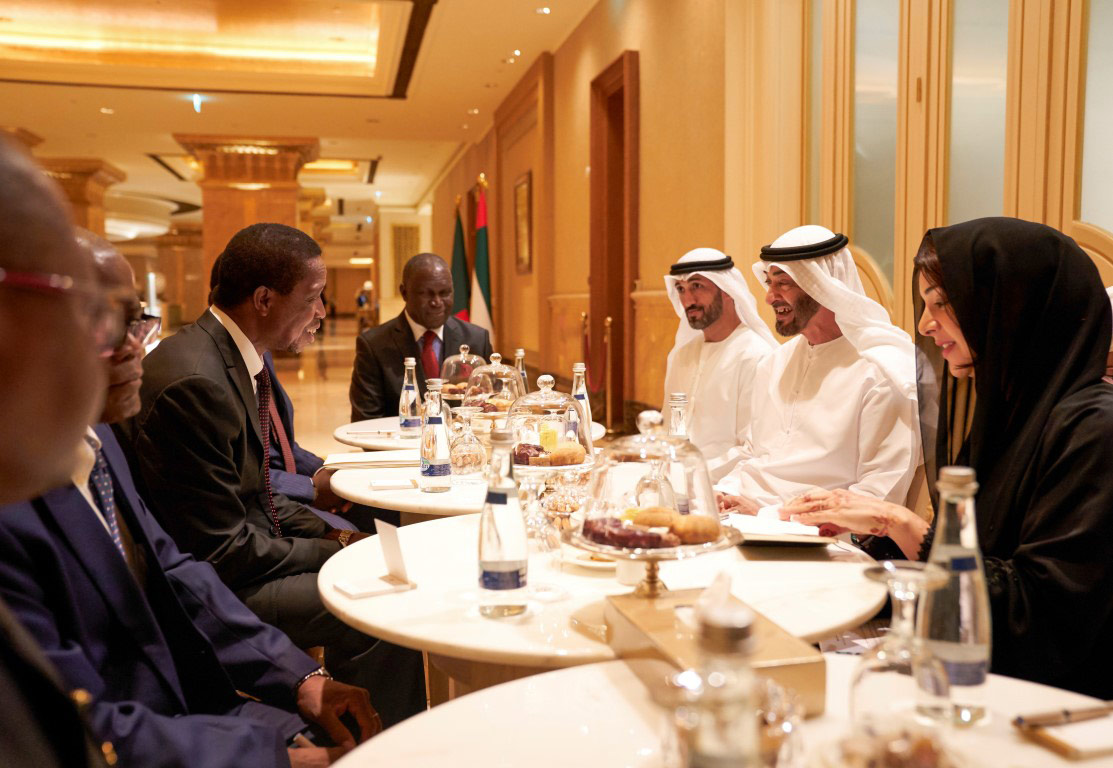 His Highness Sheikh Mohamed bin Zayed welcomed President Lungu and conveyed to him the greetings of President His Highness Sheikh Khalifa bin Zayed Al Nahyan.