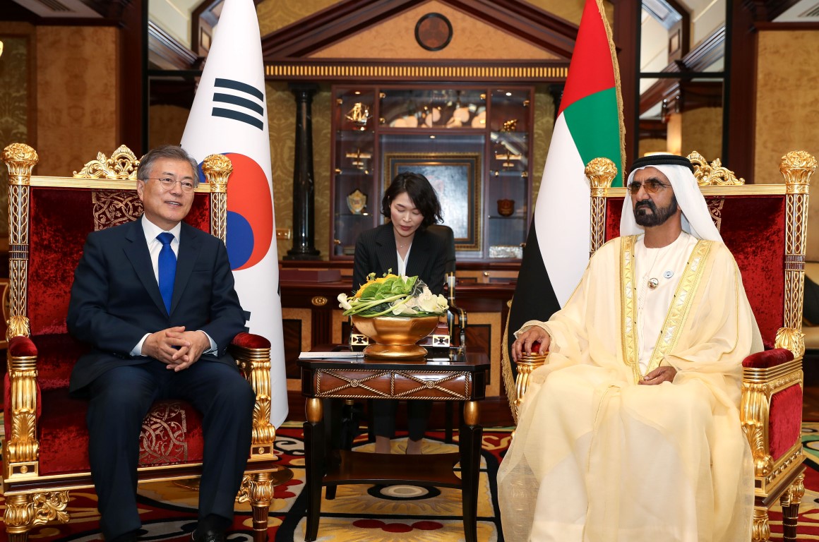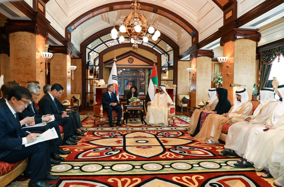 During the meeting, Sheikh Mohammed and President Jae-in said that the UAE's leadership, government and institutions are keen to expand cooperation between the two friendly countries and develop economic, investment, cultural, and humanitarian partnership between them.