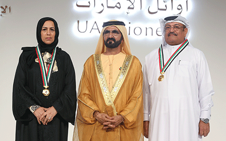 On this occasion, Sheikh Mohammed said: "We have today honoured 44 personalities who are UAE pioneers. They are our pride and honouring them is a thank-you message from the Emirati people for their devoted efforts. We have pioneers in every Emirati home in the UAE since early times. They are the individuals who we can count on to lead the UAE’s effort to achieve top rankings in all fields and our ambassadors to the world."