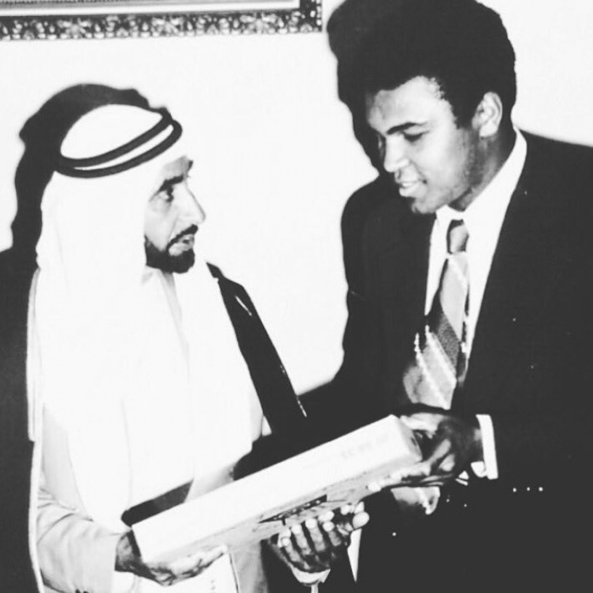 The late Sheikh Zayed bin Sultan Al Nahyan with Muhammad Ali during his visit to Abu Dhabi. (Al Bayan)