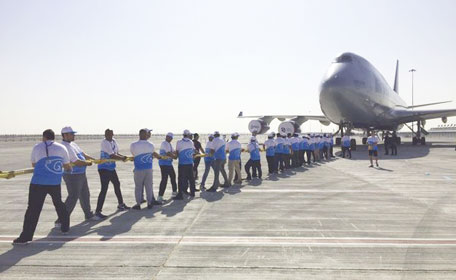 Organised by Dubai Airports, a total of 10 teams from across the airport community to test their collective might as they competed to pull a 747 National Air Cargo plane the furthest distance.