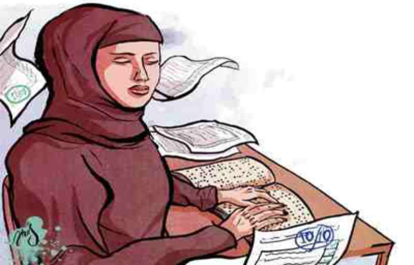 Noura is the only blind girl in her class yet she gets the highest marks every year.