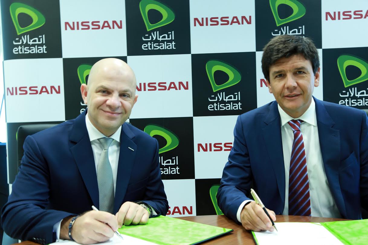 Nissan’s Managing Director for Middle East, Samir Cherfan and Salvador Anglada, Chief Business Officer at Etisalat. (Supplied)