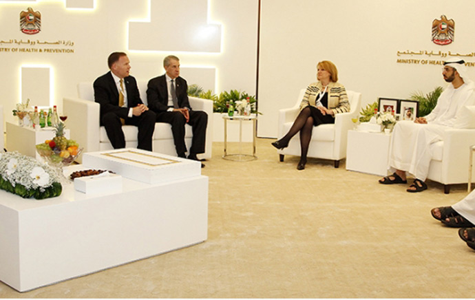 The discussions touched on prospects of collaboration between the UAE and international pharmaceutical companies to transfer knowledge and accelerate exchange of expertise.