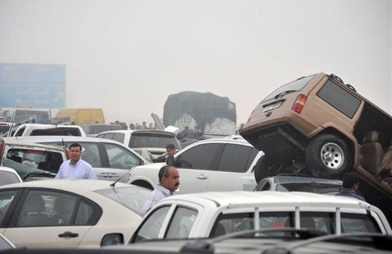 Three people were killed and more than 300 people were injured in a similar incident on March 11 in 2008. About 25km stretch of the highway was closed following the incident which also occured between Abu Dhabi and Dubai.